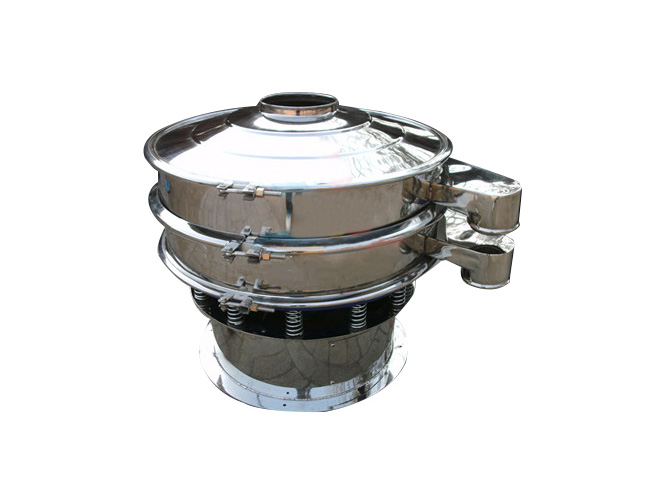 旋振篩(圓形振動篩)由立式振動電機作激振源,因為其上下端重錘安裝在發動軸兩側,使電機的旋轉運動轉變為垂直、水平、傾斜的三次元運動。  旋振篩產品特點:  設計精巧,耐用,適合任何粉類以及粘性液體的篩分?! 〔僮骱唵危瑩Q網方便,易于清洗。  篩網無阻塞,粉末無飛揚?! ‰s質以及粗料自動排出,并且可以與給料設備、輸送設備配套使用,處理量大,生產效率高。  尺寸小,節省空間,易于移動?! ∫子陴B護,可單層或多層使用。  篩網設計合理耐用,換網只需3-5分鐘?! 『Y網可達5層,篩分出6種不同顆粒大小的物料